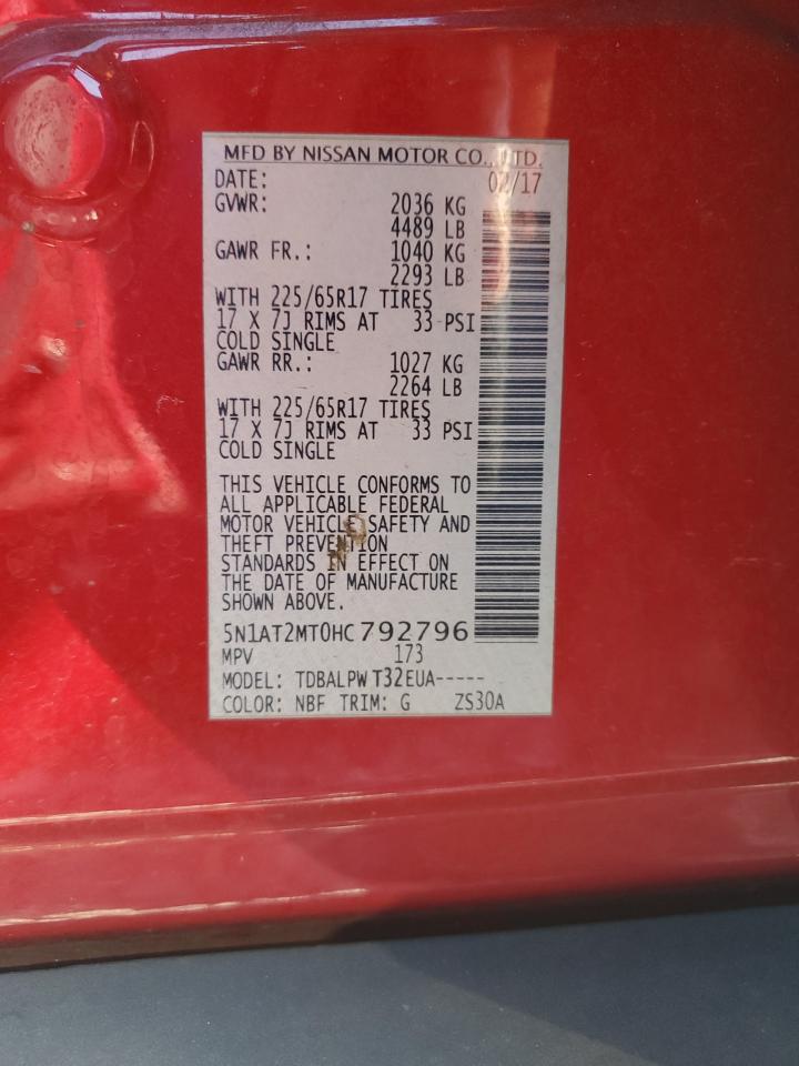 NISSAN ROGUE 2.5 2017 р.в., (5N1AT2MT0HC792796) з США