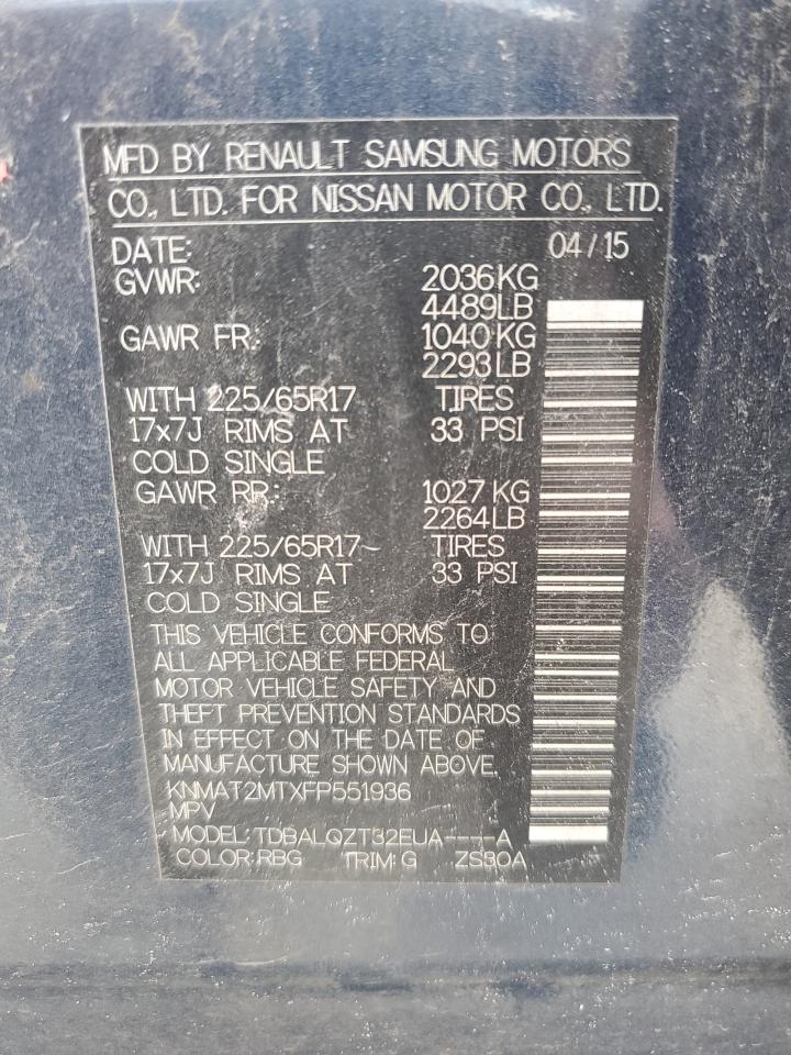 NISSAN ROGUE 2.5 2015 р.в., (KNMAT2MTXFP551936) з США