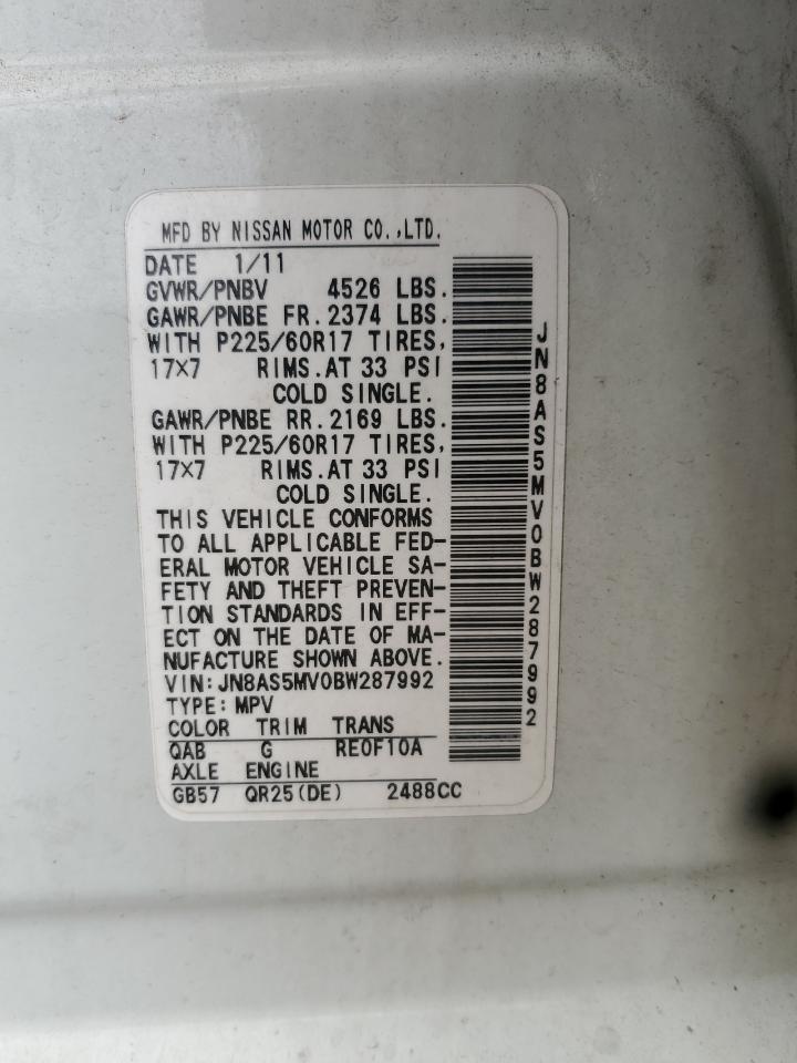 NISSAN ROGUE 2.5 2011 р.в., Повний привід (JN8AS5MV0BW287992) з США