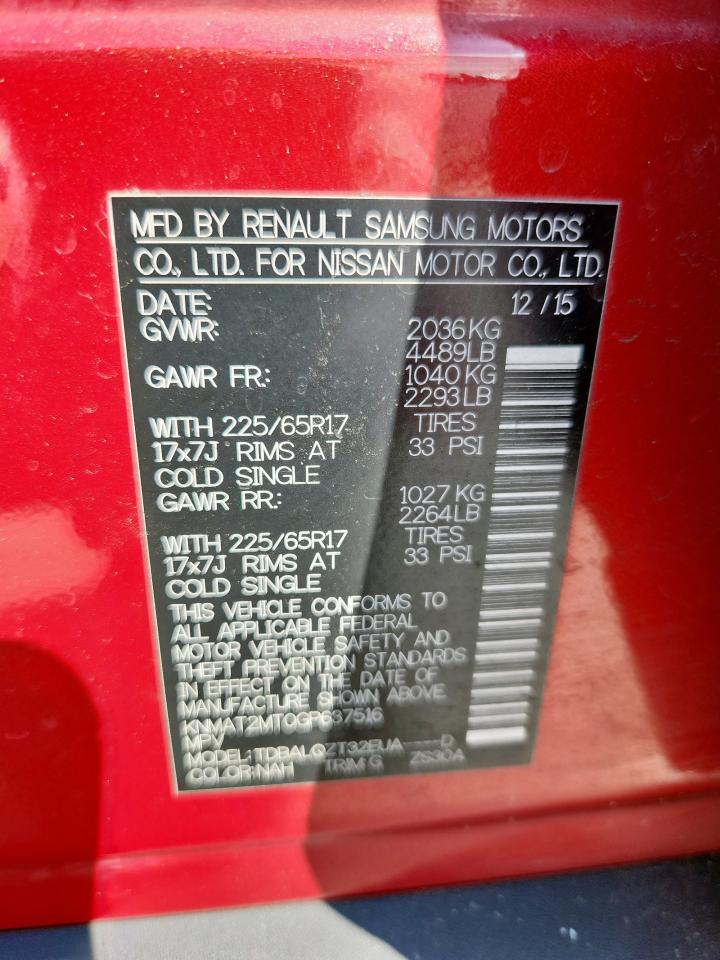 NISSAN ROGUE 2.5 2016 р.в., (KNMAT2MT0GP637516) з США