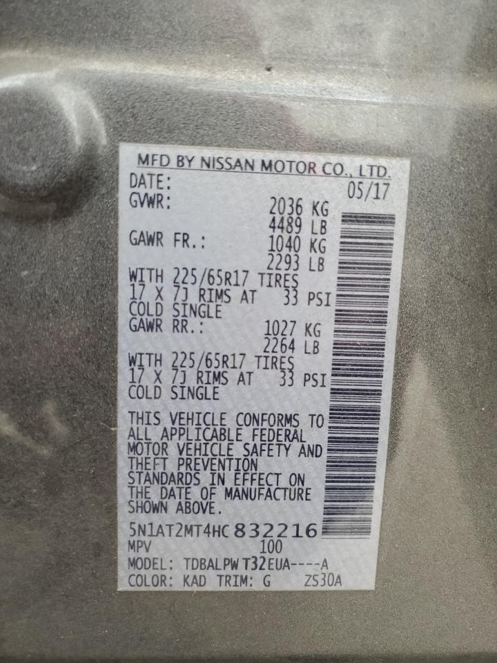 NISSAN ROGUE 2.5 2017 р.в., (5N1AT2MT4HC832216) з США