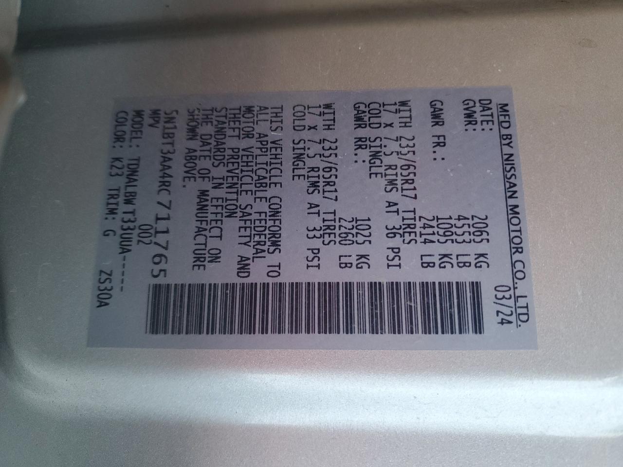 Колір СрібнийЦиліндри 3VIN 5N1BT3AA4RC711765Стан Заводиться та їде (перевірено)Ушкодження ЗадняДата аукціону 2025-11-03