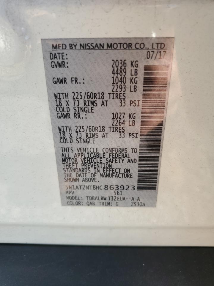 Колір БілийЦиліндри 4VIN 5N1AT2MT8HC863923Стан Заводиться та їде (перевірено)Ушкодження Передня або задня
