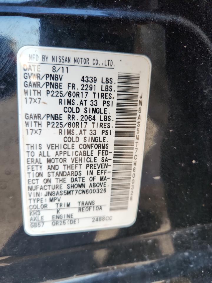 NISSAN ROGUE 2.5 2012 р.в., (JN8AS5MT7CW600326) з США