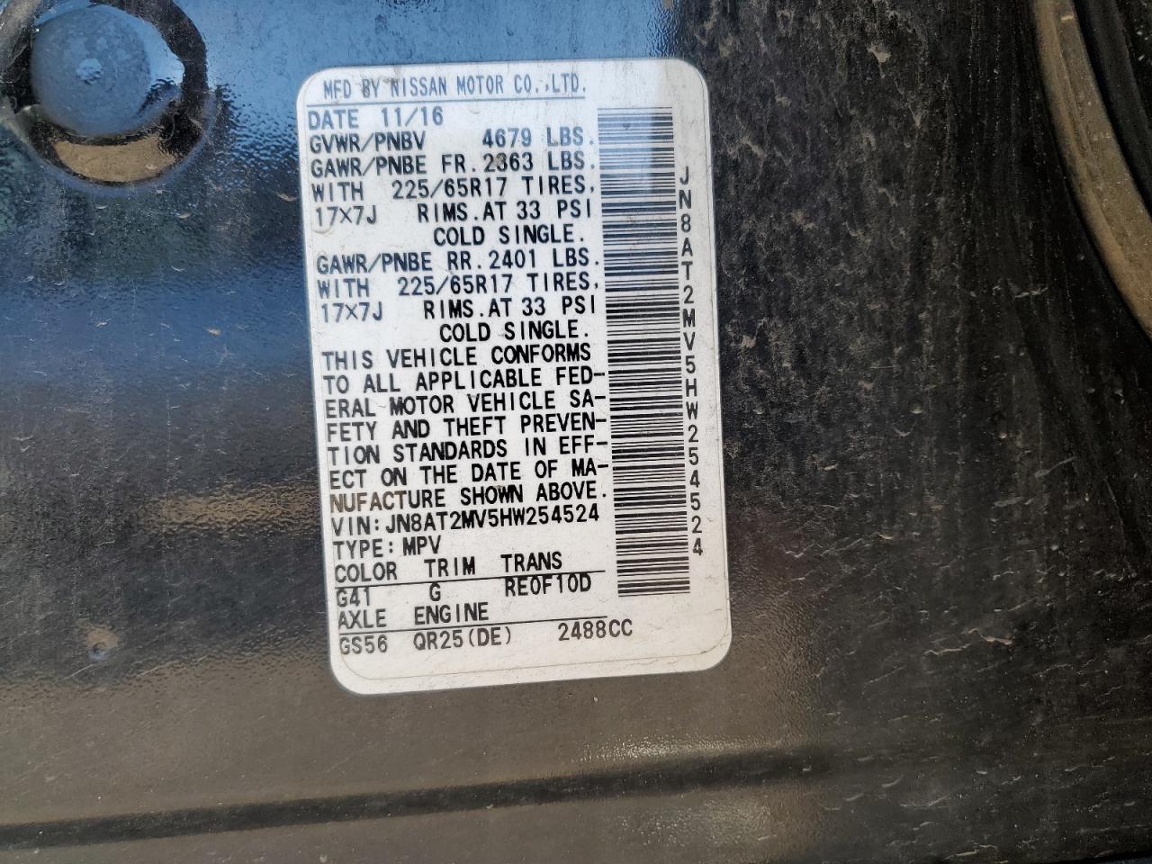 NISSAN ROGUE 2.5 2017 р.в., Повний привід (JN8AT2MV5HW254524) з США