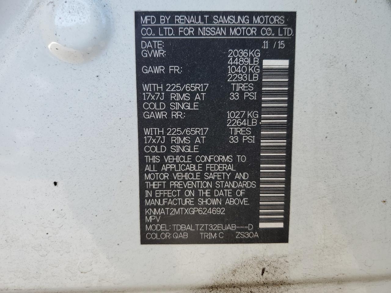 Колір БілийЦиліндри 4VIN KNMAT2MTXGP624692Стан Заводиться та їде (перевірено)Ушкодження Задня
