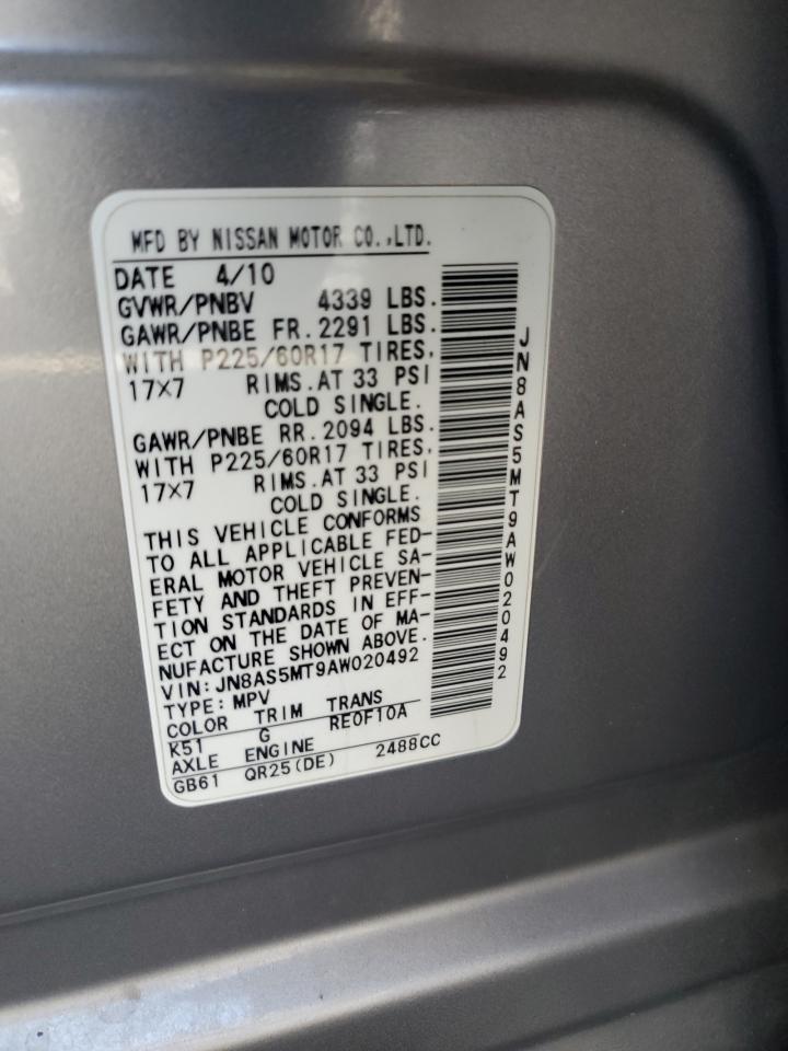 NISSAN ROGUE 2.5 2010 р.в., (JN8AS5MT9AW020492) з США