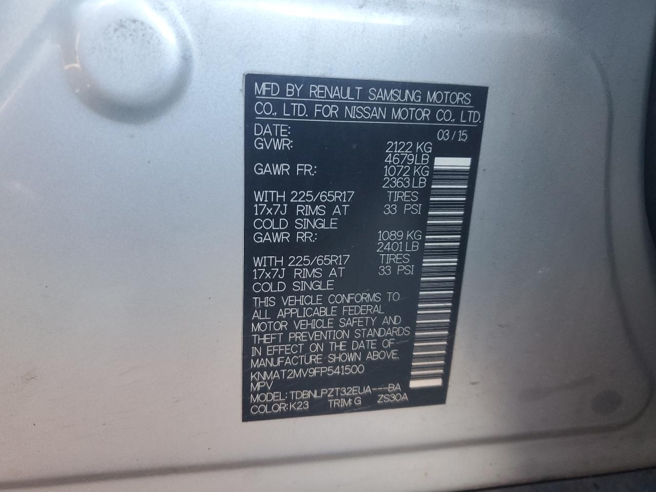 2015 NISSAN ROGUE SV