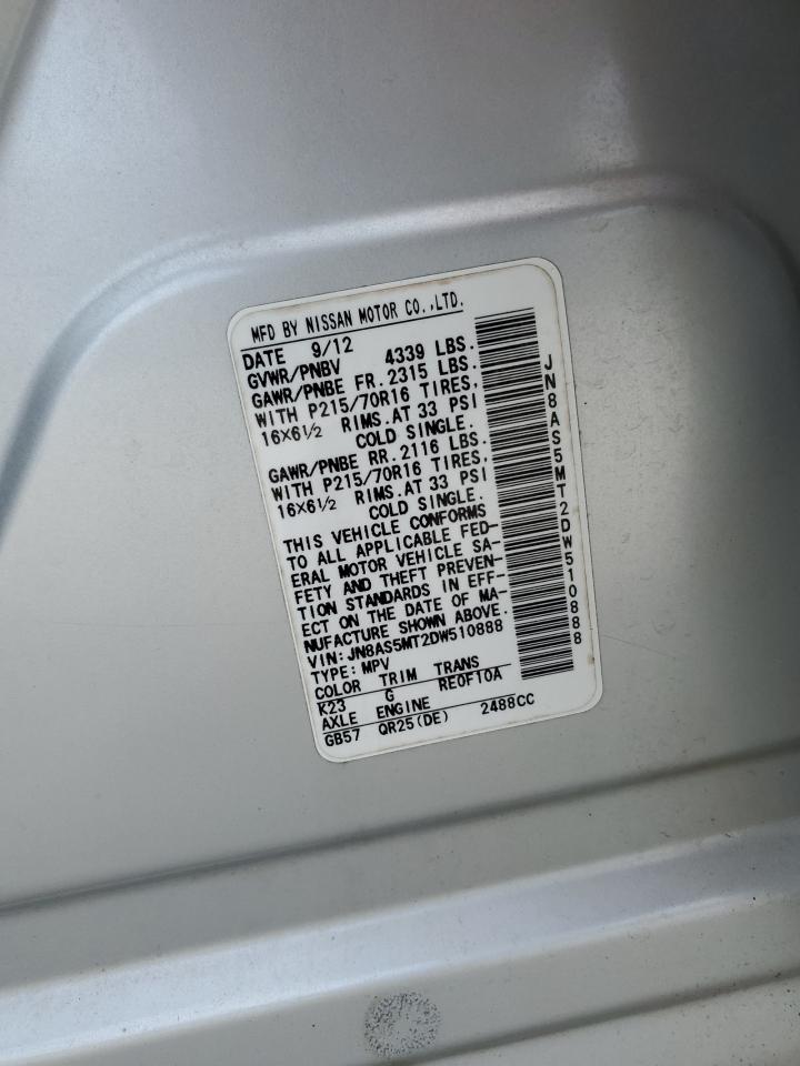 Колір СрібнийЦиліндри 4VIN JN8AS5MT2DW510888Стан Заводиться та їде (перевірено)Ушкодження Передня або задня