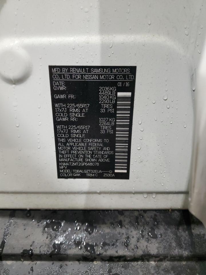 Колір БілийЦиліндри 4VIN KNMAT2MT2GP648078Стан Заводиться та їде (перевірено)Ушкодження Передня або задня