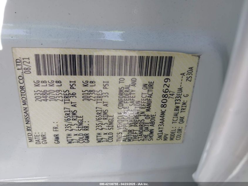 NISSAN ROGUE 2.5 2021 р.в., Передній привід (5N1AT3AA4MC808629) з США