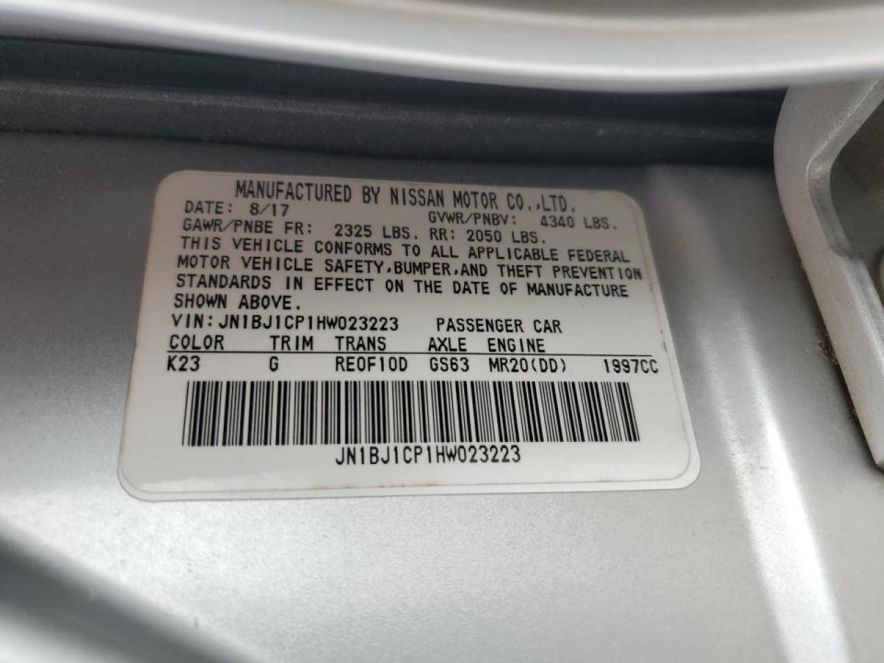 Колір СрібнийЦиліндри 4VIN JN1BJ1CP1HW023223Стан Заводиться та їде (перевірено)Ушкодження Град