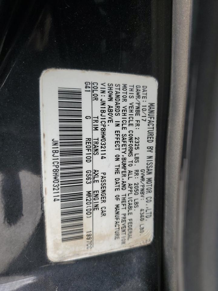 Колір ЧорнийЦиліндри 4VIN JN1BJ1CP8HW032114Стан Заводиться та їде (перевірено)Ушкодження Передня або задня