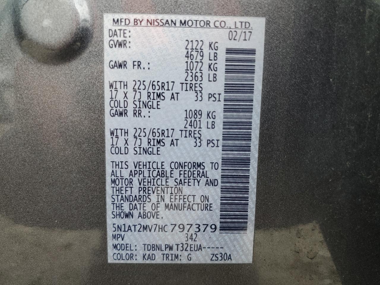 2017 NISSAN ROGUE S