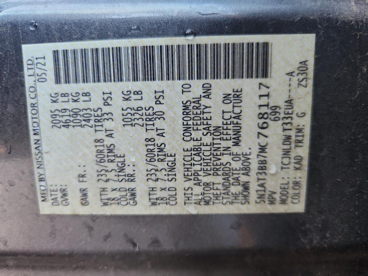 NISSAN ROGUE 2.5 2021 р.в., Повний привід (5N1AT3BB7MC768117) з США