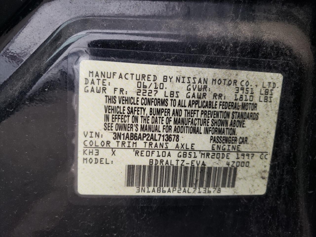 Колір ЧорнийЦиліндри 4VIN 3N1AB6AP2AL713678Стан Заводиться та їде (перевірено)Ушкодження НезначніДата аукціону 2025-11-05