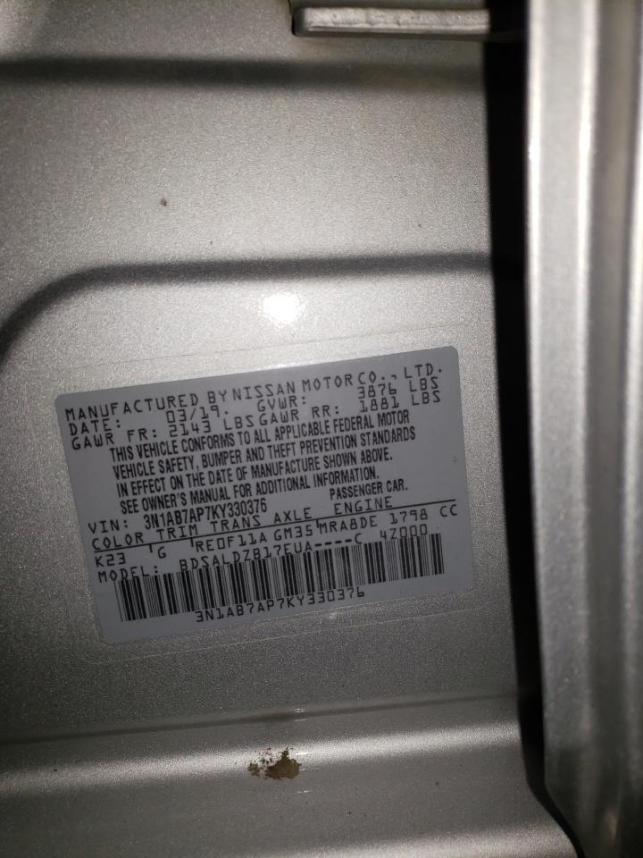 NISSAN SENTRA 1.8 2019 р.в., (3N1AB7AP7KY330376) з США