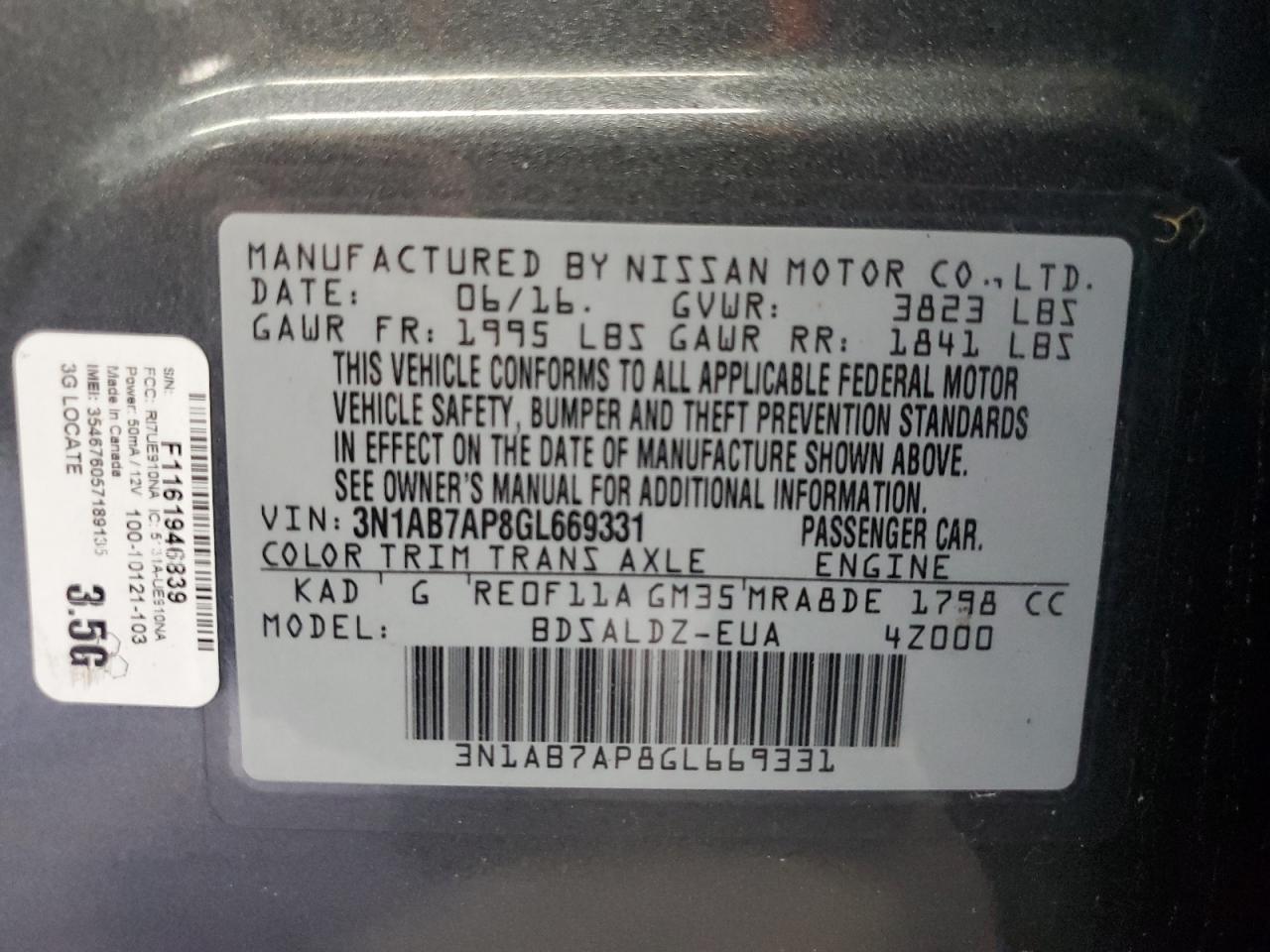 Колір СірийЦиліндри 4VIN 3N1AB7AP8GL669331Стан ЗаводитьсяУшкодження Механічні пошкодженняДата аукціону 2025-11-03
