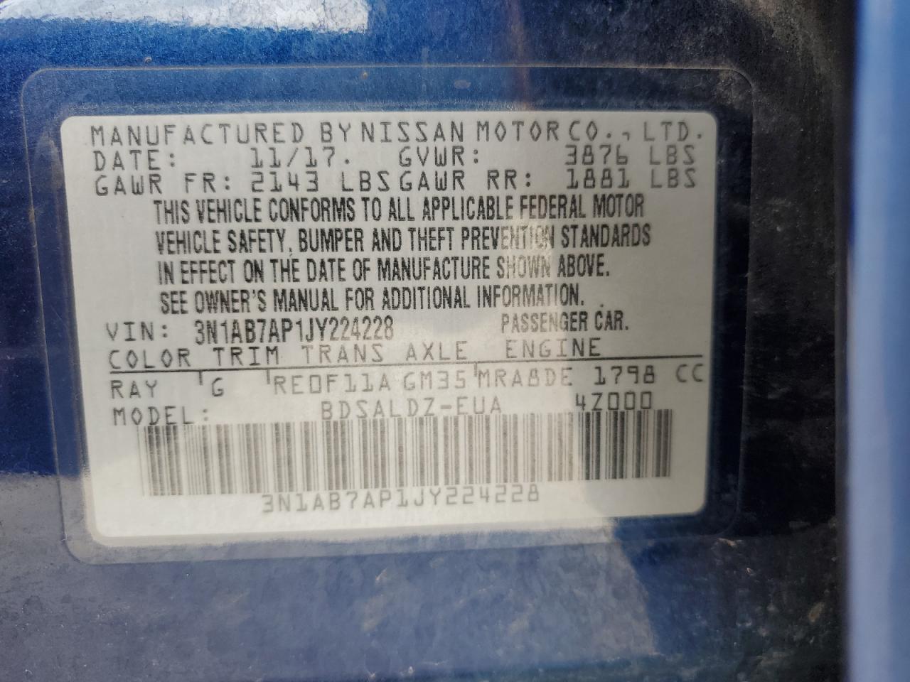 Колір СинійЦиліндри 4VIN 3N1AB7AP1JY224228Стан Заводиться та їде (перевірено)Ушкодження ЗадняДата аукціону 2025-11-05