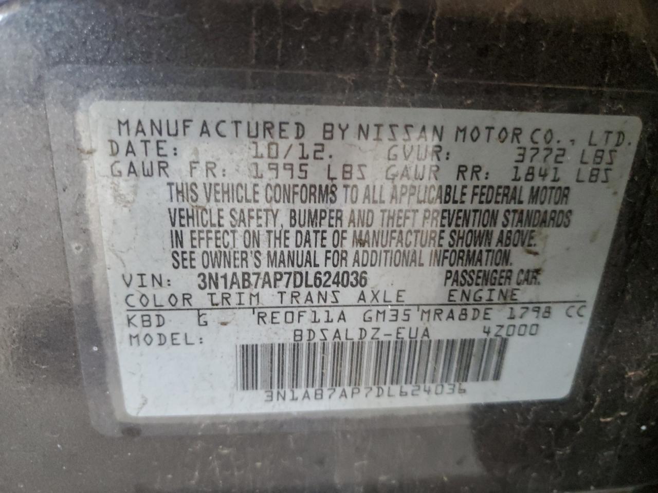 Колір СірийЦиліндри 4VIN 3N1AB7AP7DL624036Стан Заводиться та їде (перевірено)Ушкодження Передня або задняДата аукціону 2025-11-05