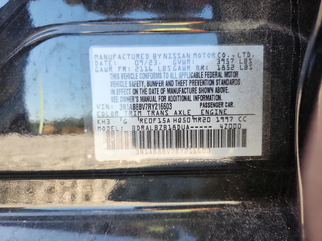 Колір ЧорнийЦиліндри 4VIN 3N1AB8BV7RY216603Стан НевідомоУшкодження Задня