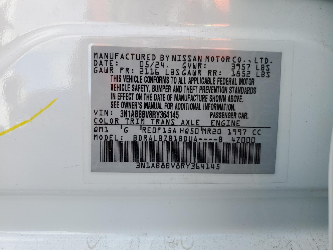 NISSAN SENTRA 2.0 2024 р.в., (3N1AB8BV8RY364145) з США