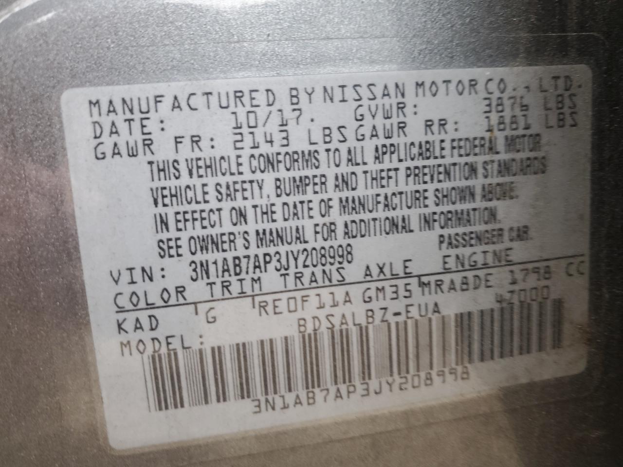 Колір СірийЦиліндри 4VIN 3N1AB7AP3JY208998Стан Заводиться та їде (перевірено)Ушкодження Передня або задня