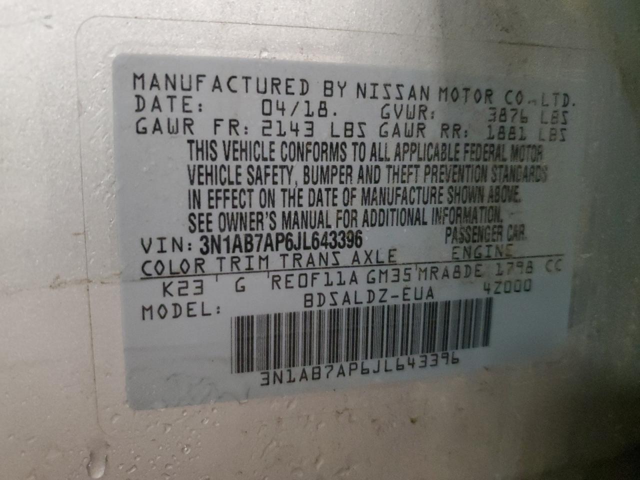 Колір СрібнийЦиліндри 4VIN 3N1AB7AP6JL643396Стан Заводиться та їде (перевірено)Ушкодження Передня або задня