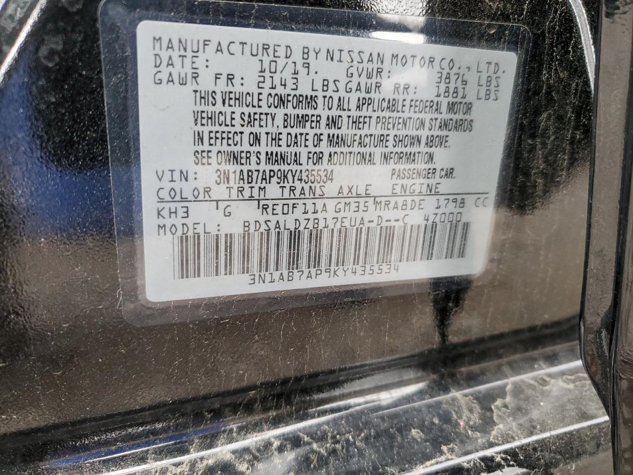 Колір ЧорнийЦиліндри 4VIN 3N1AB7AP9KY435534Стан Заводиться та їде (перевірено)Ушкодження Передня або задня