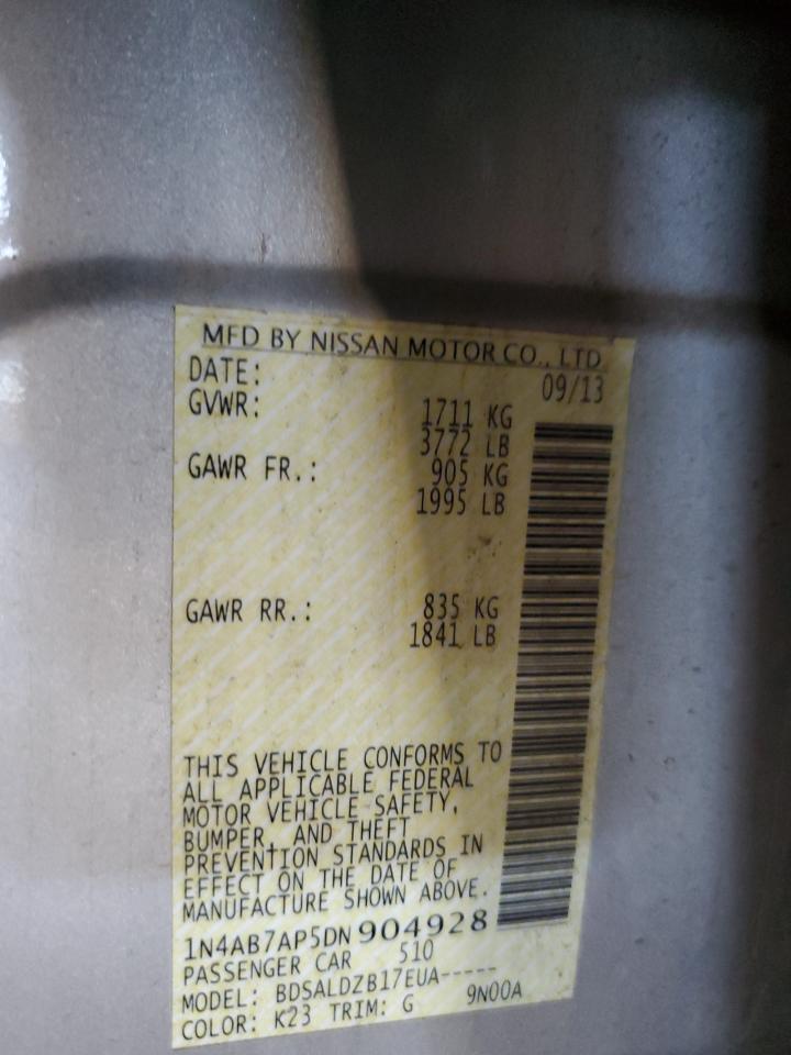Колір СрібнийЦиліндри 4VIN 1N4AB7AP5DN904928Стан Заводиться та їде (перевірено)Ушкодження Передня або задняДата аукціону 2025-11-10