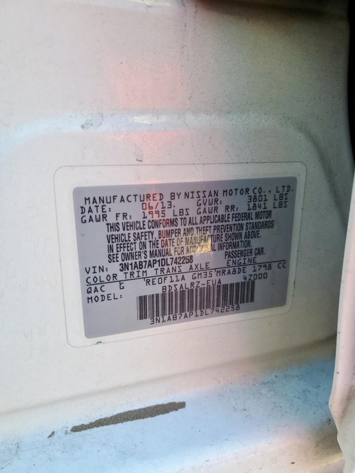 NISSAN SENTRA 1.8 2013 р.в., (3N1AB7AP1DL742258) з США