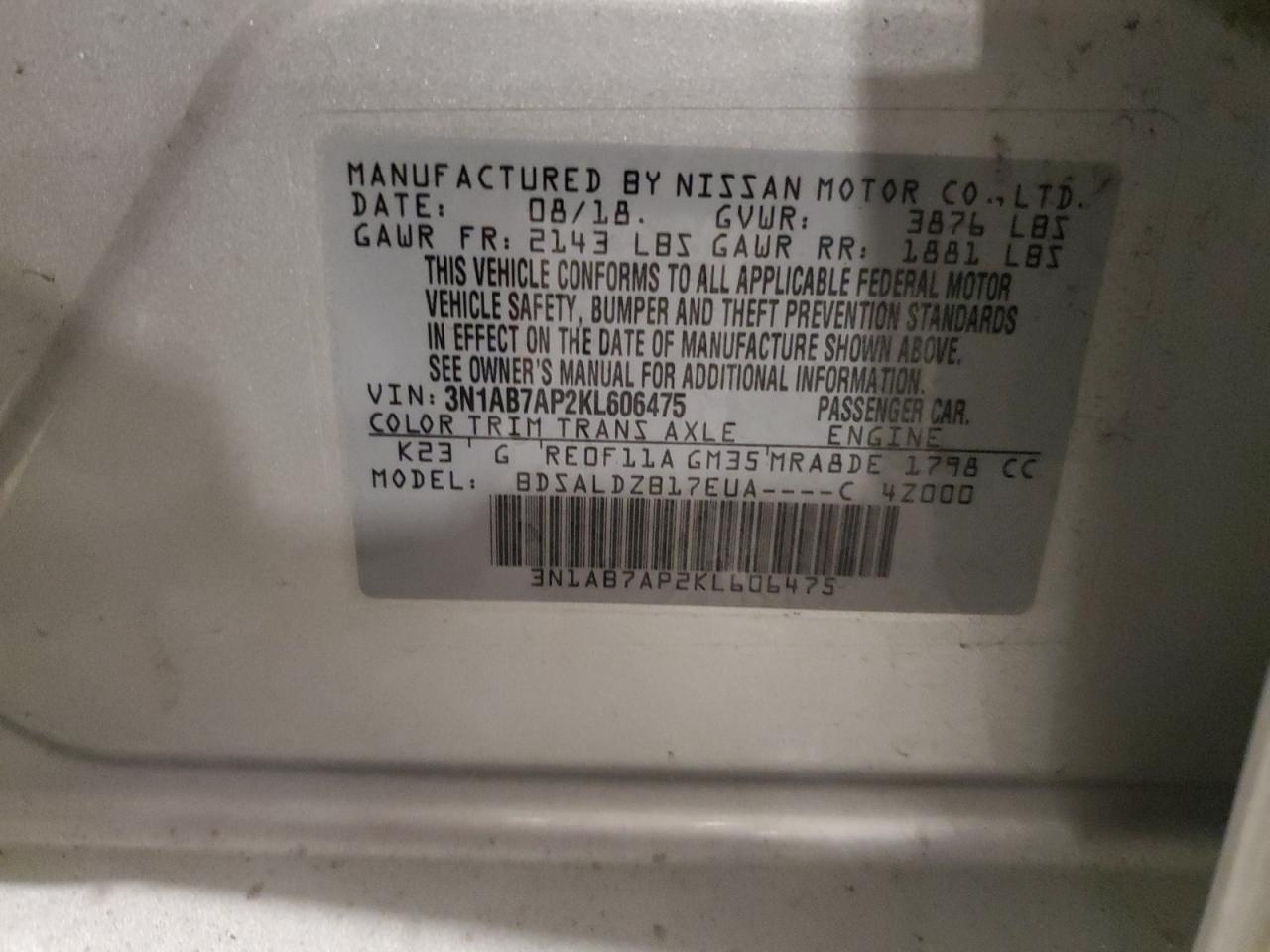 Колір СрібнийЦиліндри 4VIN 3N1AB7AP2KL606475Стан Заводиться та їде (перевірено)Ушкодження Передня або задня