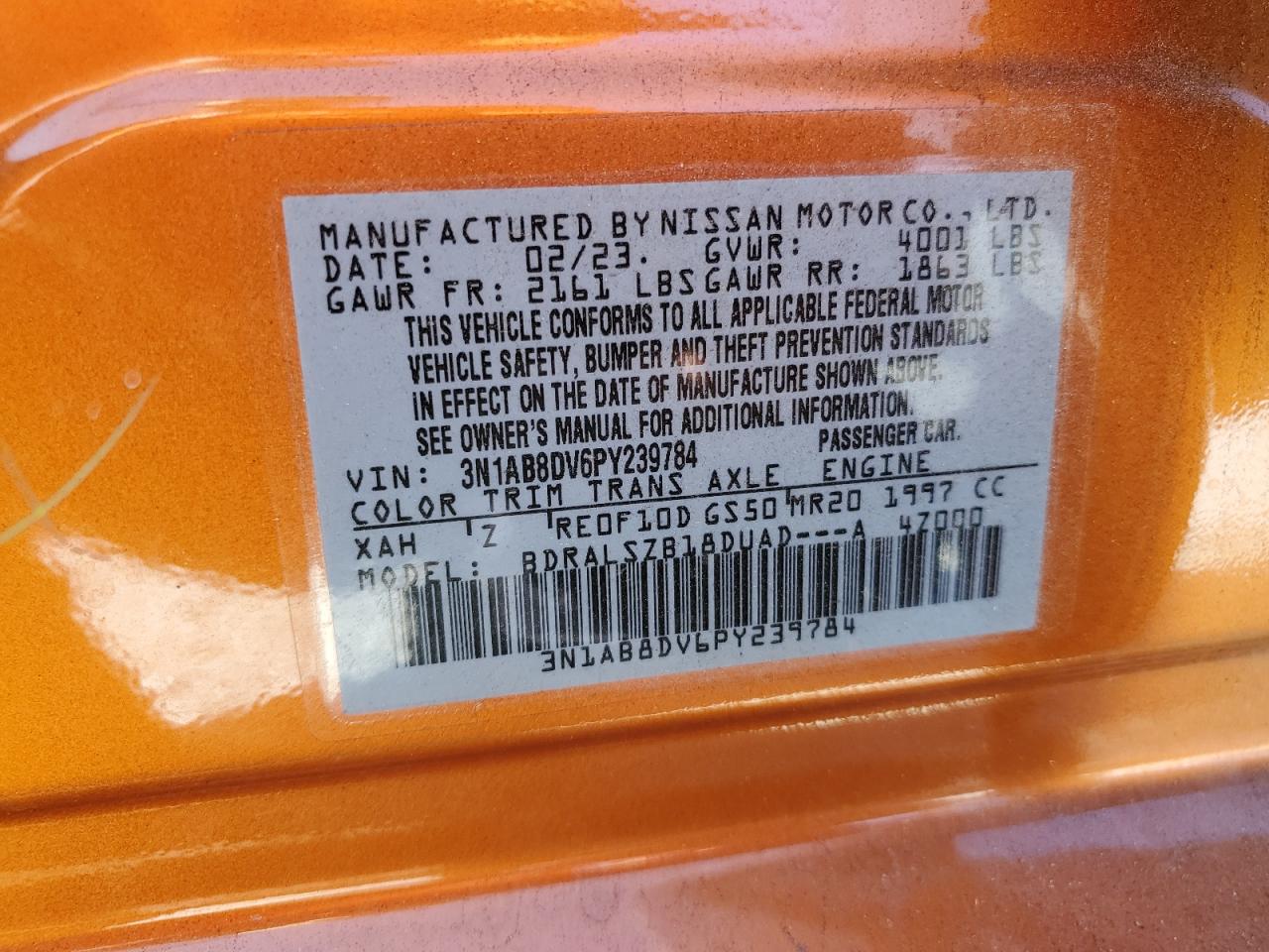 Колір АпельсиновийЦиліндри 4VIN 3N1AB8DV6PY239784Стан Заводиться та їде (перевірено)Ушкодження Передня або задняДата аукціону 2025-11-05