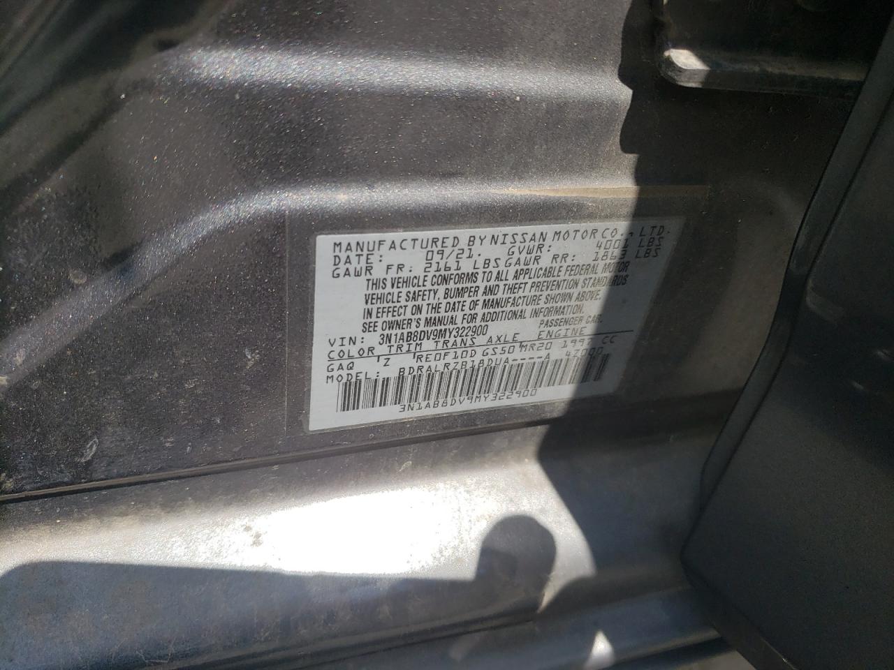 NISSAN SENTRA 2.0 2021 р.в., (3N1AB8DV9MY322900) з США