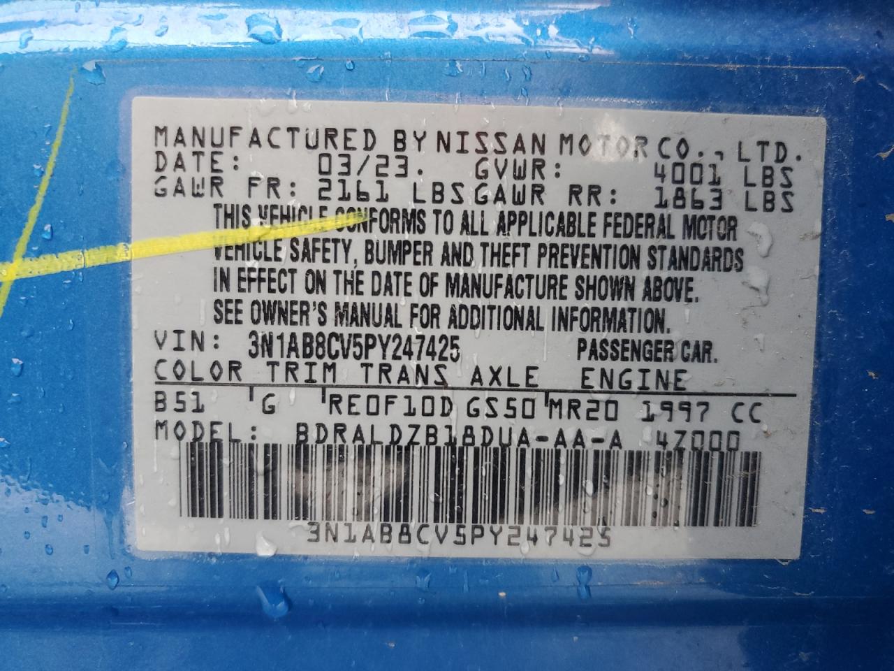 NISSAN SENTRA 2.0 2023 р.в., (3N1AB8CV5PY247425) з США