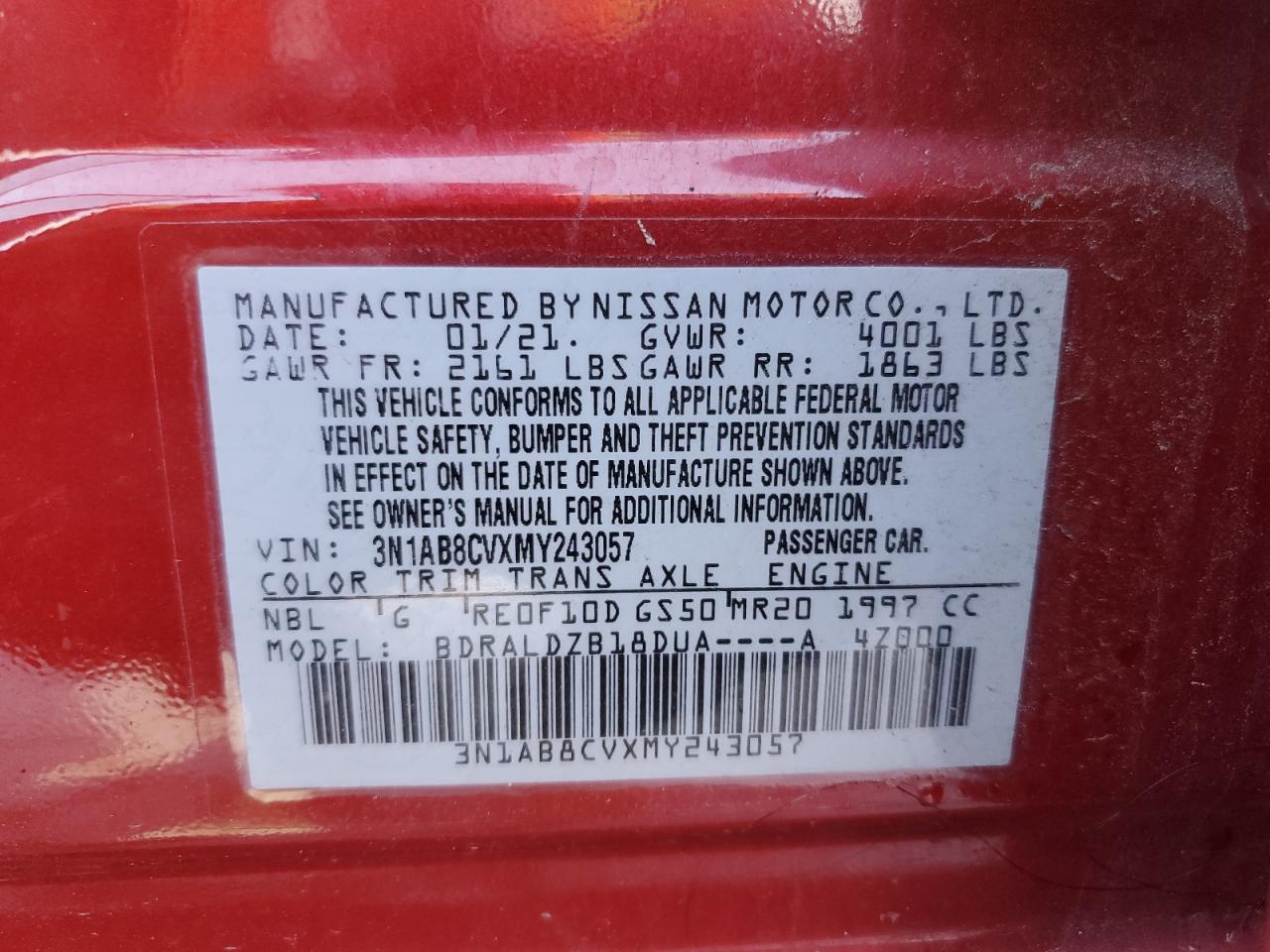Колір БордовийЦиліндри 4VIN 3N1AB8CVXMY243057Стан Заводиться та їде (перевірено)Ушкодження Передня або задня