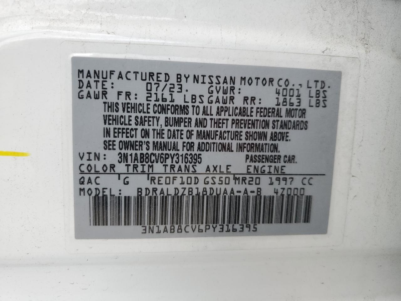 Колір БілийЦиліндри 4VIN 3N1AB8CV6PY316395Стан НевідомоУшкодження З боків