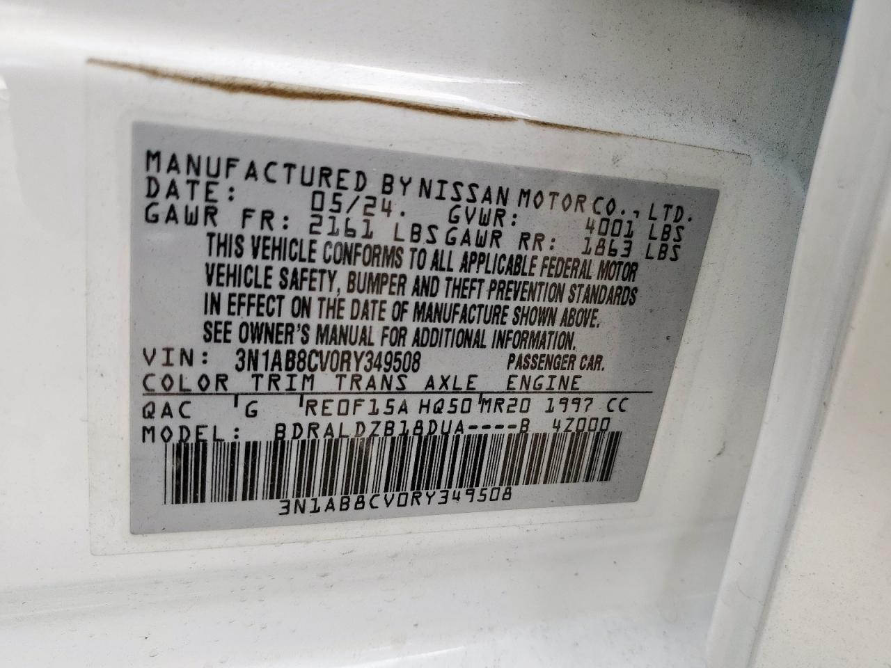 NISSAN SENTRA 2.0 2024 р.в., (3N1AB8CV0RY349508) з США