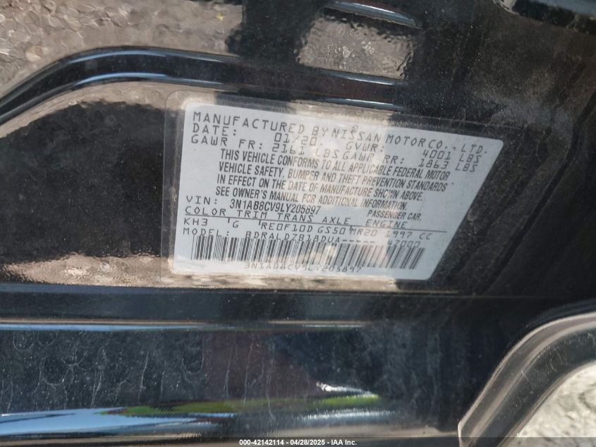 NISSAN SENTRA 2.0 2020 р.в., Передній привід (3N1AB8CV9LY205897) з США