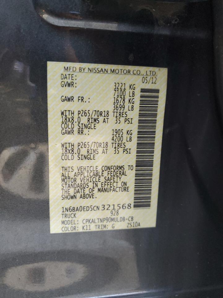 NISSAN TITAN 5.6 2012 р.в., Задній привід (1N6BA0ED5CN321568) з США