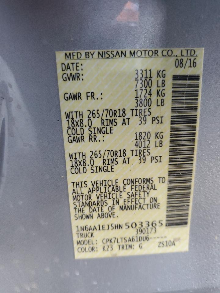 NISSAN TITAN 5.6 2017 р.в., 4x4 з заднім приводом (1N6AA1EJ5HN503365) з США