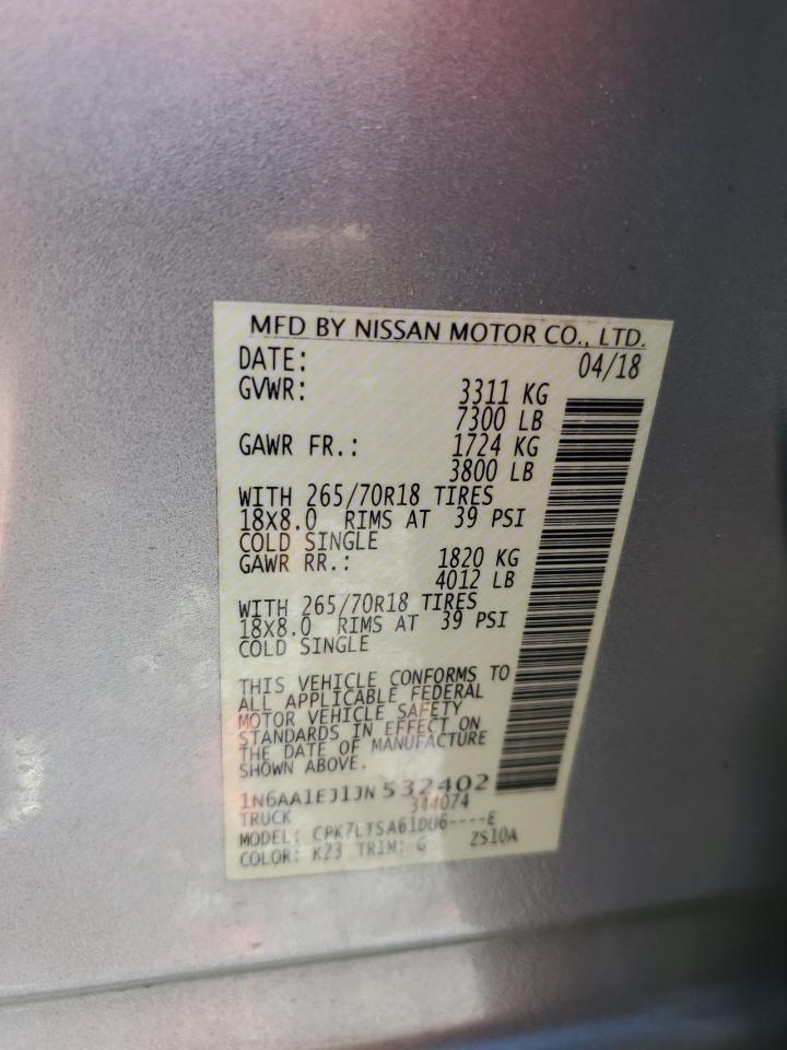 NISSAN TITAN 5.6 2018 р.в., 4x4 з заднім приводом (1N6AA1EJ1JN532402) з США