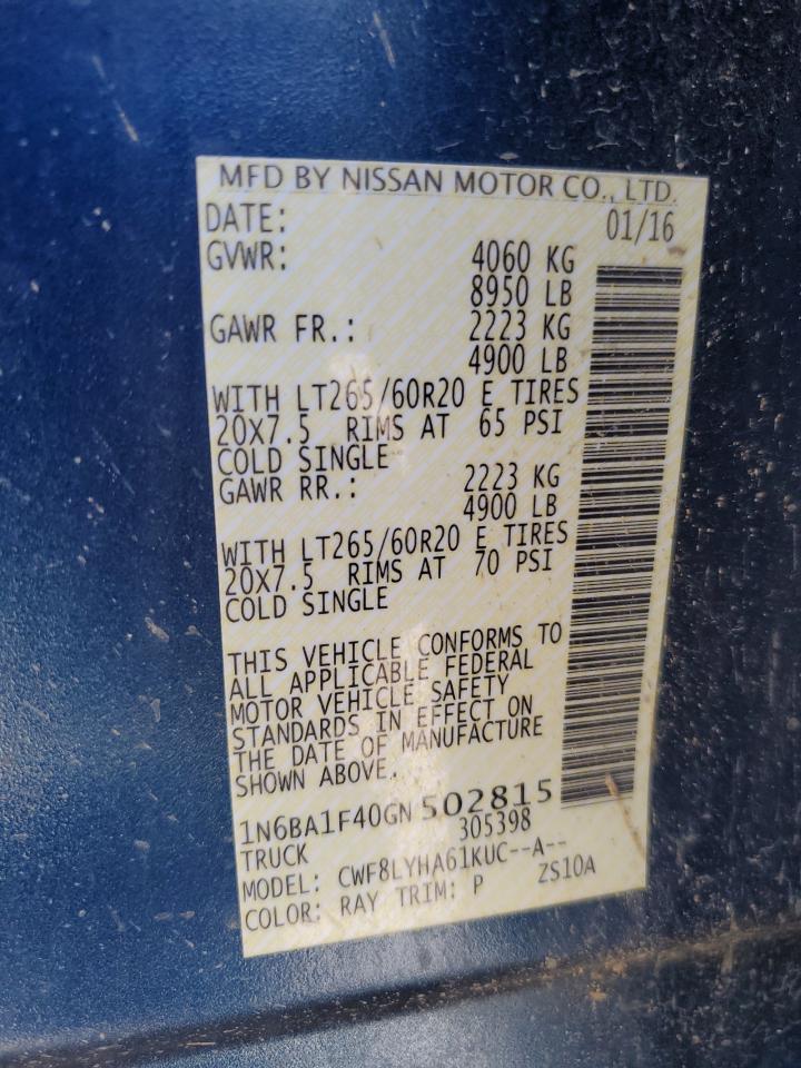 2016 NISSAN TITAN PLATINUM RESERVE DIESEL/S DIESEL/SL DIESEL/SV DIESEL