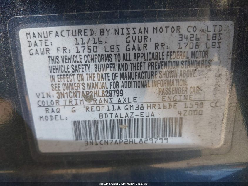 2017 NISSAN VERSA 1.6 S/1.6 S+/1.6 SL/1.6 SV