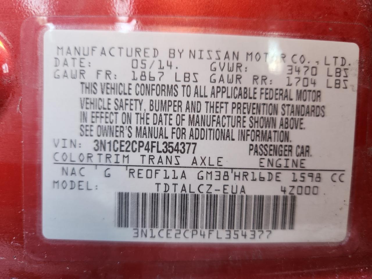 Колір ЧервонийЦиліндри 4VIN 3N1CE2CP4FL354377Стан Заводиться та їде (перевірено)Ушкодження ЗадняДата аукціону 2025-11-05