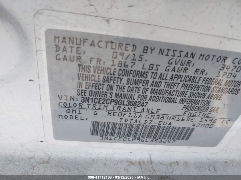 2016 NISSAN VERSA NOTE S (SR)/S PLUS/SL/SR/SV