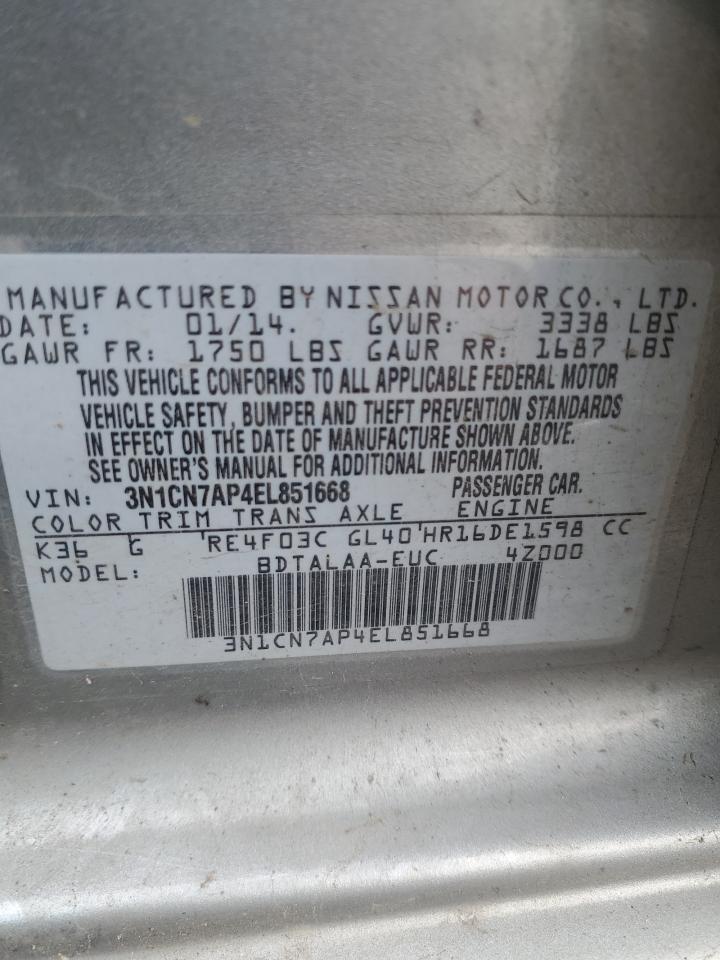 2014 NISSAN VERSA 1.6 S/1.6 S+/1.6 SL/1.6 SV