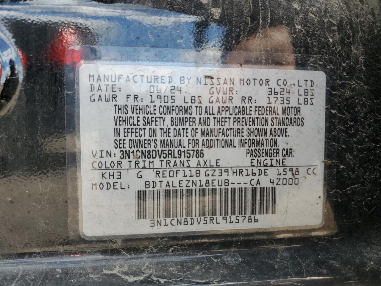 NISSAN VERSA 1.6 2024 р.в., (3N1CN8DV5RL915786) з США