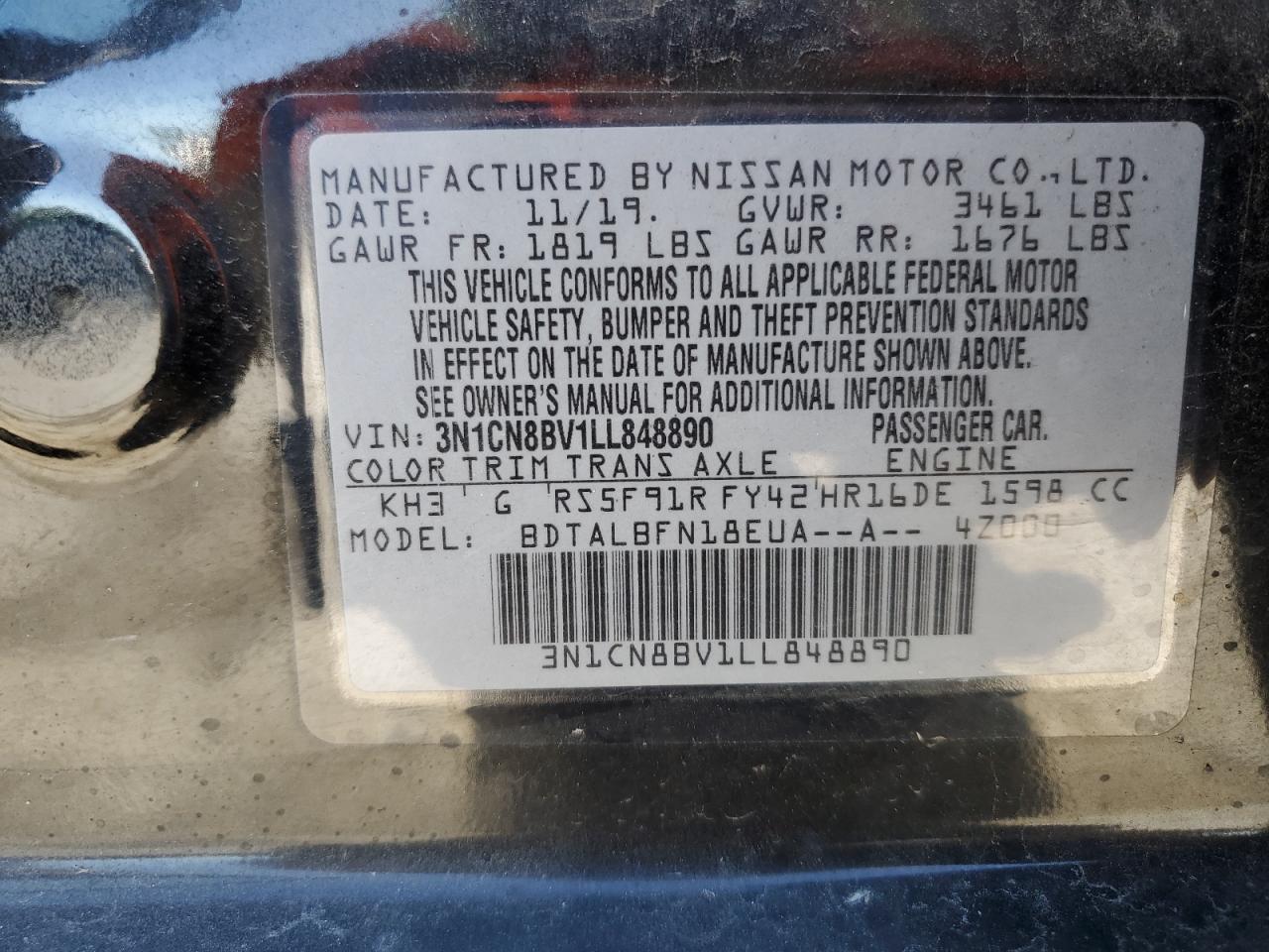 Колір ЧорнийЦиліндри 4VIN 3N1CN8BV1LL848890Стан Заводиться та їде (перевірено)Ушкодження Задня