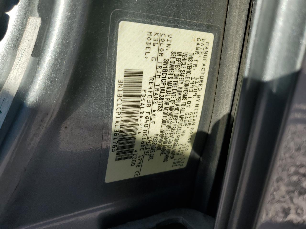 Колір СірийЦиліндри 4VIN 3N1BC1CP1AL381783Стан Заводиться та їде (перевірено)Ушкодження Передня або задня
